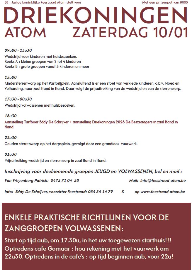 - Driekoningen Atom op zaterdag 10 januari 2026.